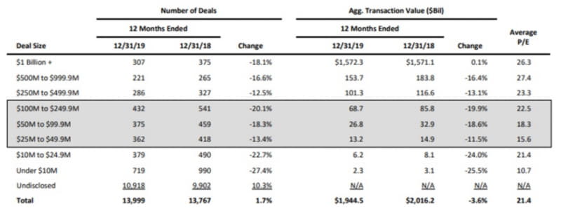 M&A activity was strong in 2019, as indicated by the following statistics from FACTSET’s “January 2020 Flashwire”: