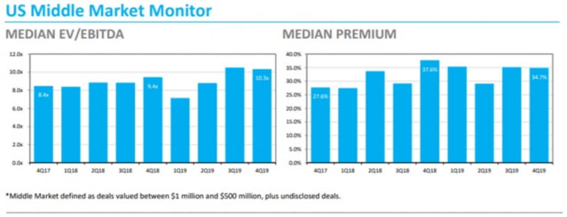 Middle Market M&A Enterprise Value/EBITDA& Premiums 4th Quarter 2017-4th Quarter 2019