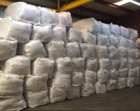 Discarded textiles bailed and ready for distribution.